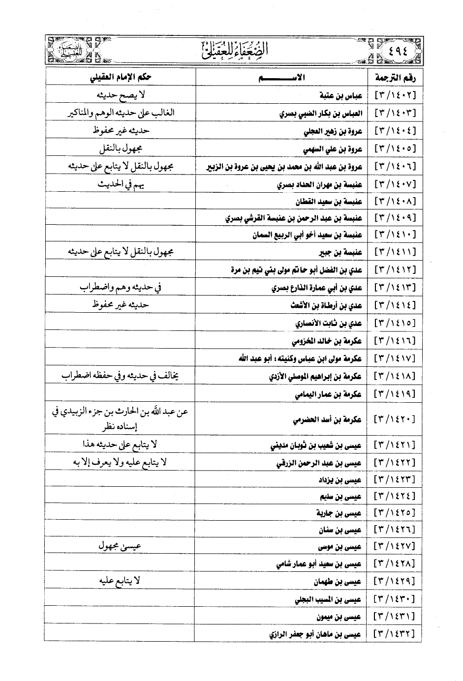 [1414/ 3] ... عدي بن أرطاة بن الأشعث ... حديثه غير محفوظ
