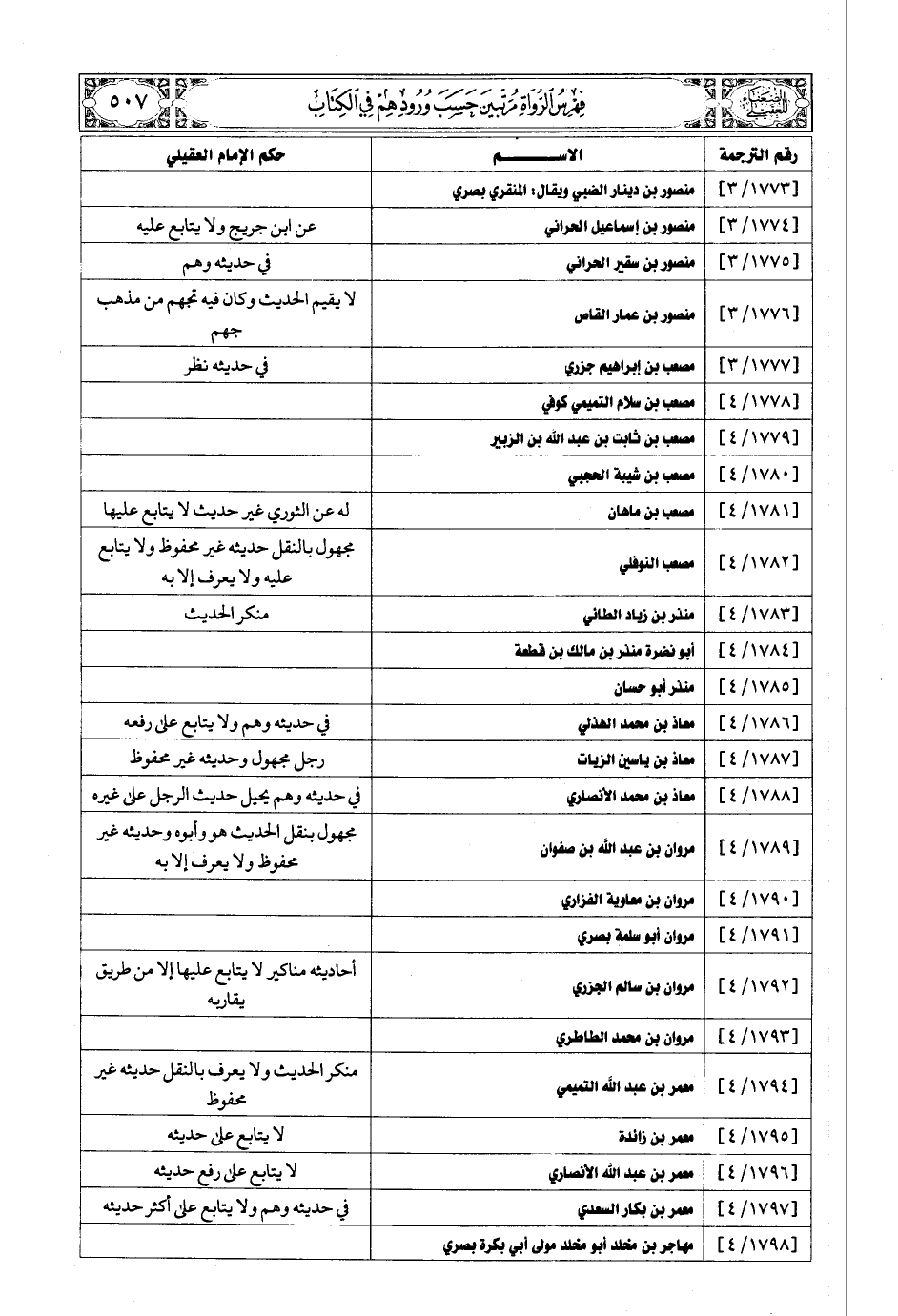[1794/ 4] ... معمر بن عبد الله التميمي ... منكر الحديث ولا يعرف بالنقل حديثه غير محفوظ