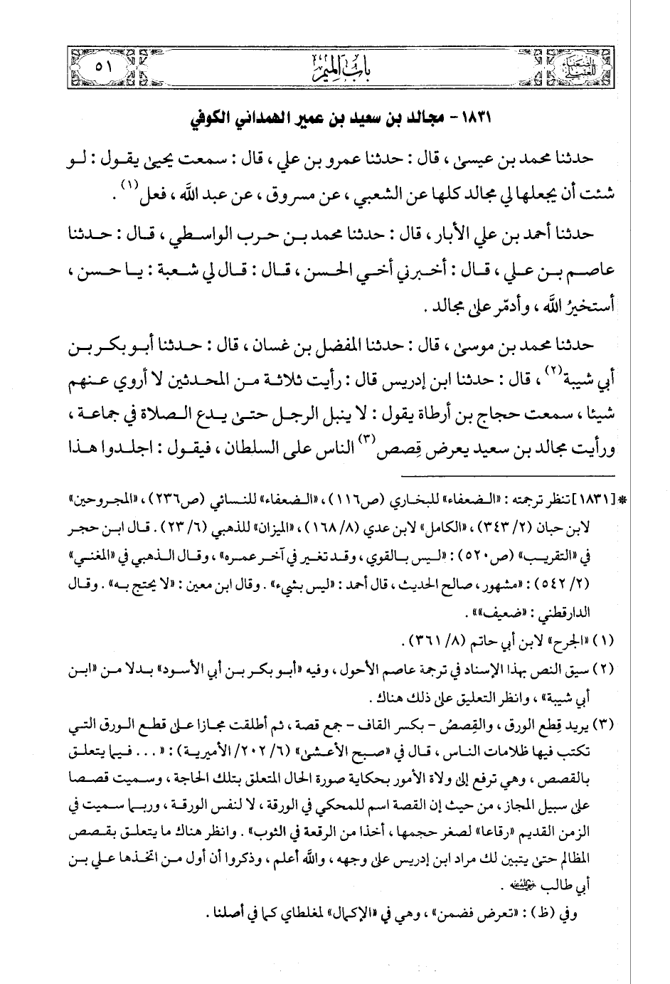 1831 (1) - مجالد بن سعيد بن عمير الهمداني الكوفي