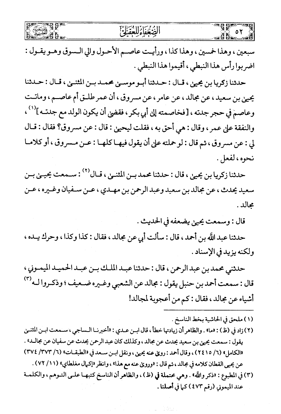 حدثنا زكريا بن يحيى، قال: حدثنا محمد بن المثنى، قال (2): سمعت يحيى بن سعيد يحدث، عن مجالد بن سعيد وعبد الرحمن بن مهدي، عن سفيان وغيره، عن مجالد.
