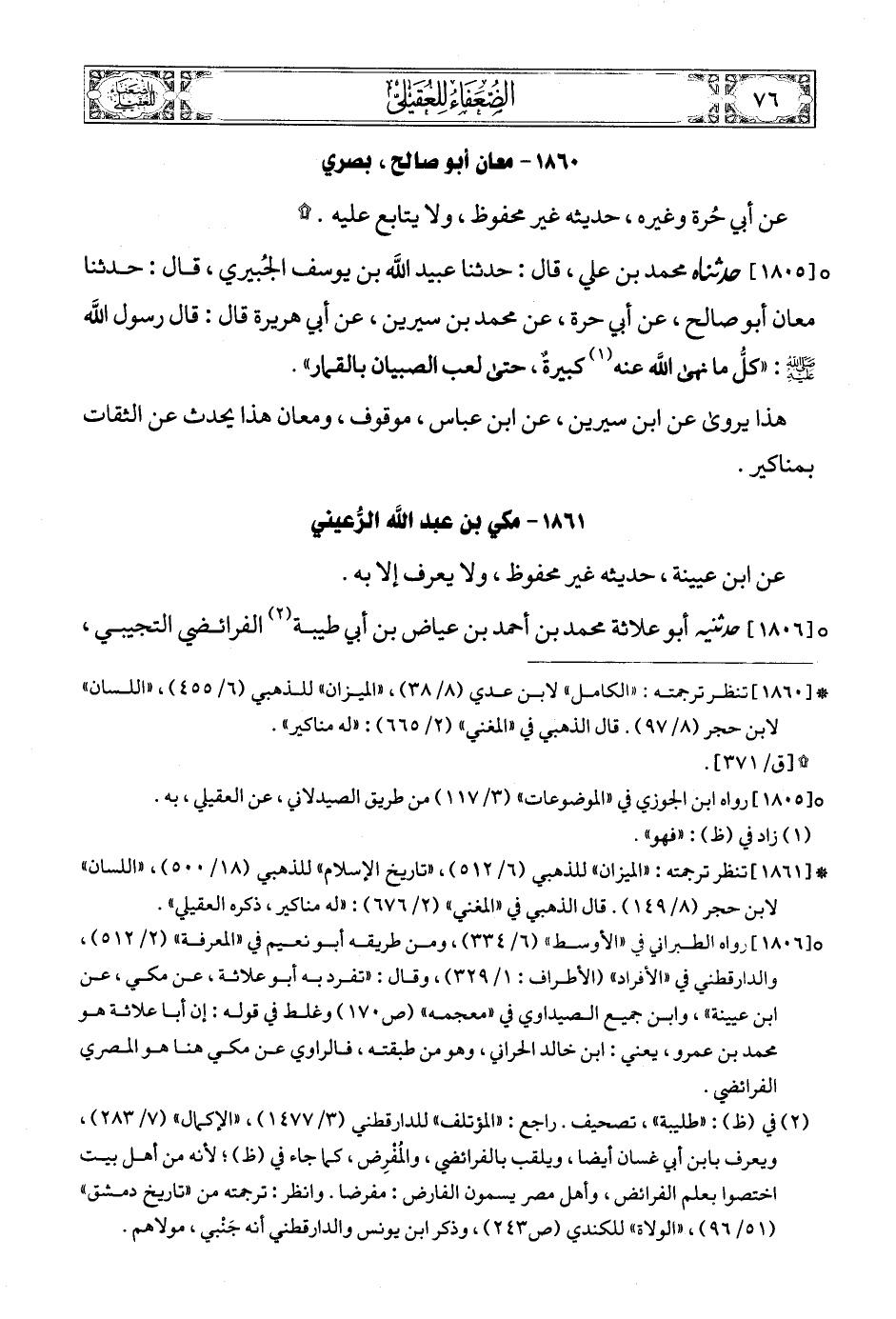 (5) * [1861] تنظر ترجمته: «الميزان» للذهبي (6/ 512) , «تاريخ الإسلام» للذهبي (18/ 500)، «اللسان» لابن حجر (8/ 149). قال الذهبي في «المغني» (2/ 676): «له مناكير، ذكره العقيلي».
