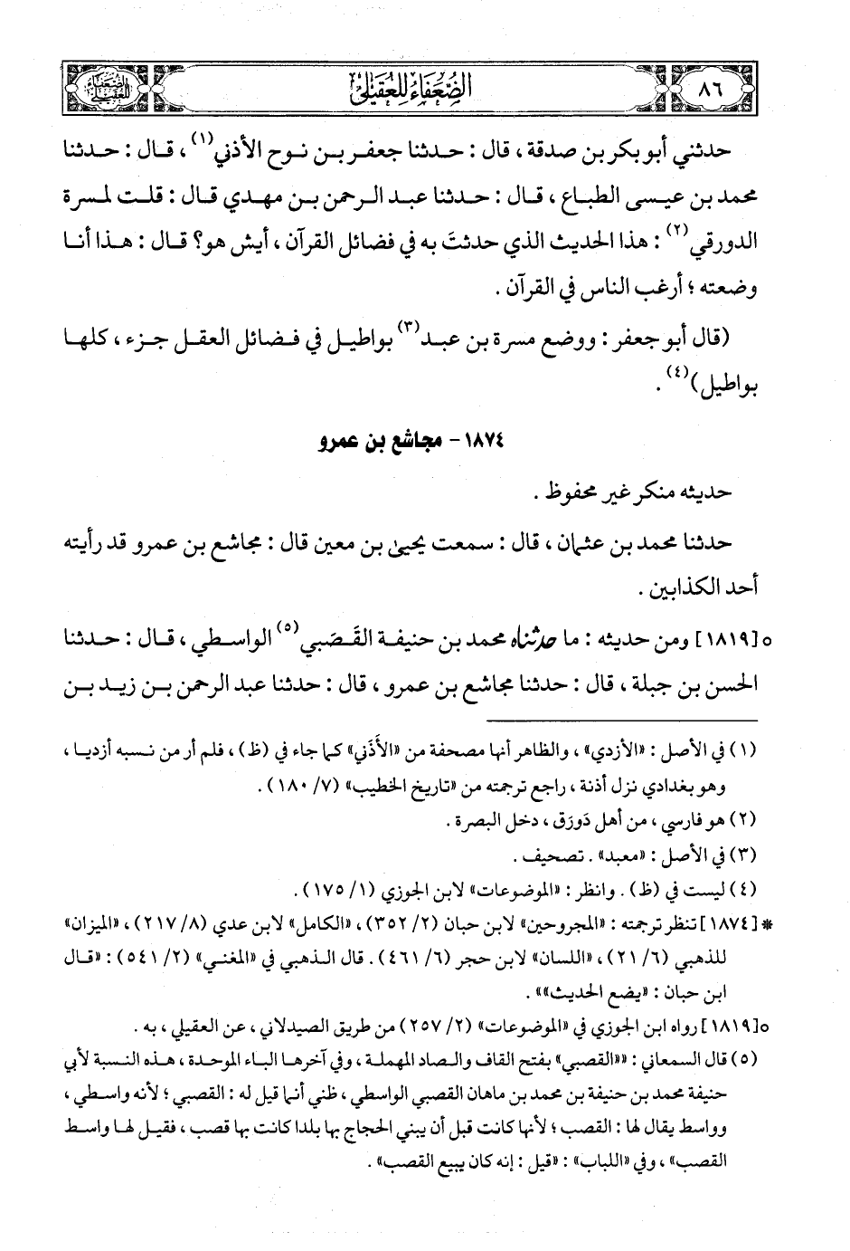 (6) [1819] رواه ابن الجوزي في «الموضوعات» (2/ 257) من طريق الصيدلاني، عن العقيلي، به.