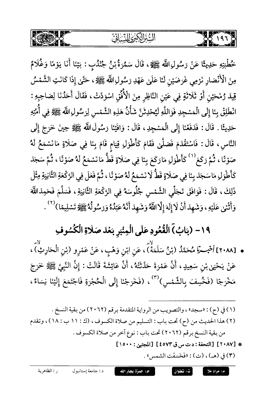 19- بابُ القُعُودُ عَلَى المِنْبَرِ بَعْدَ صَلاَةِ الكُسُوفِ.
