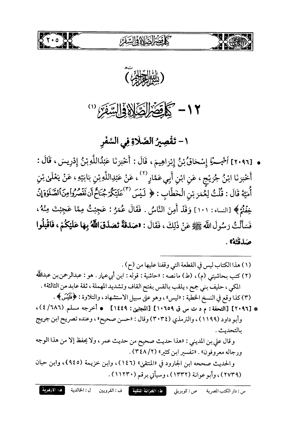 12 - كِتَابُ قَصْرِ الصَّلاَةِ فِي السَّفَرِ.