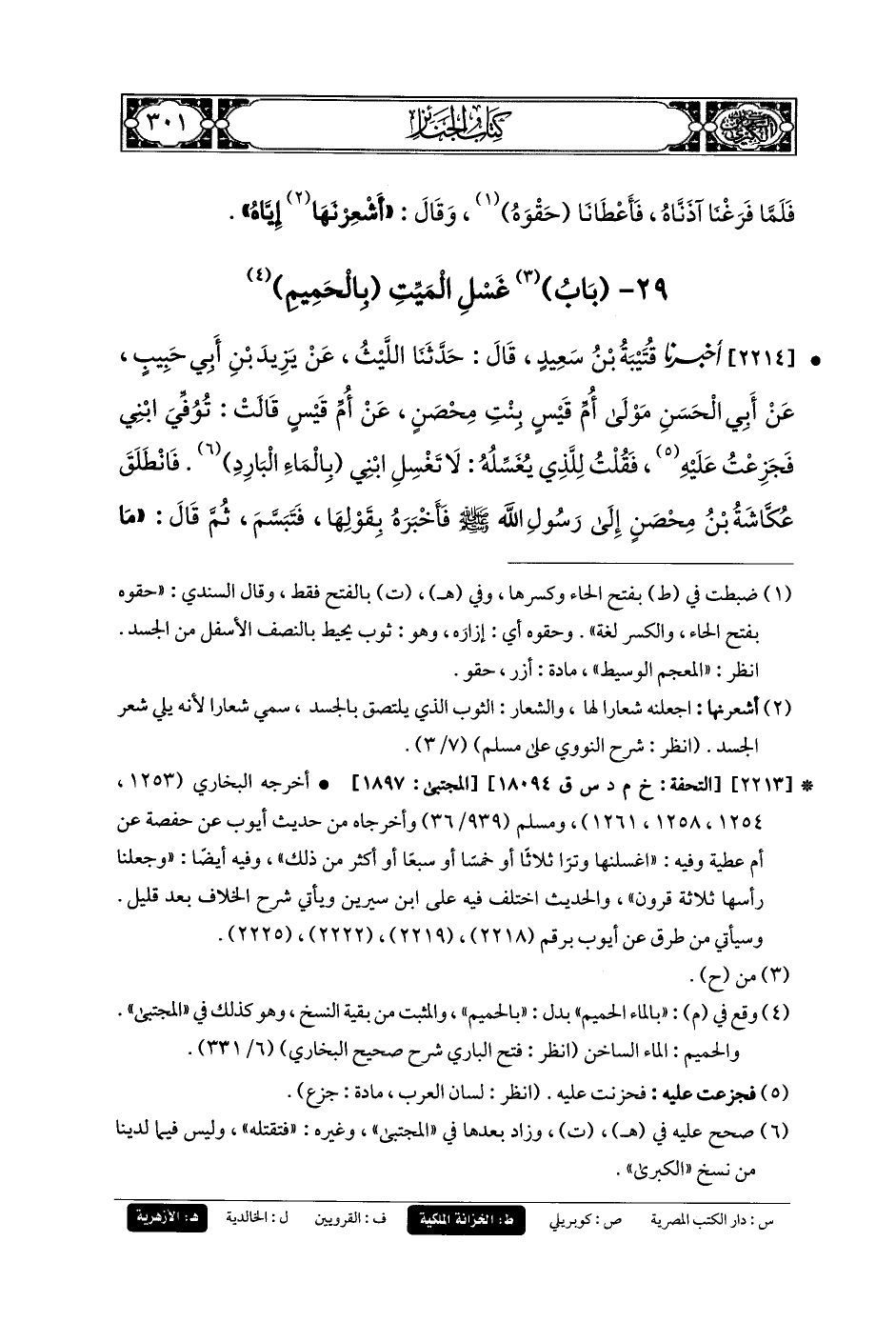 29- بابُ غَسْلِ المَيِّتِ بالحَمِيمِ.