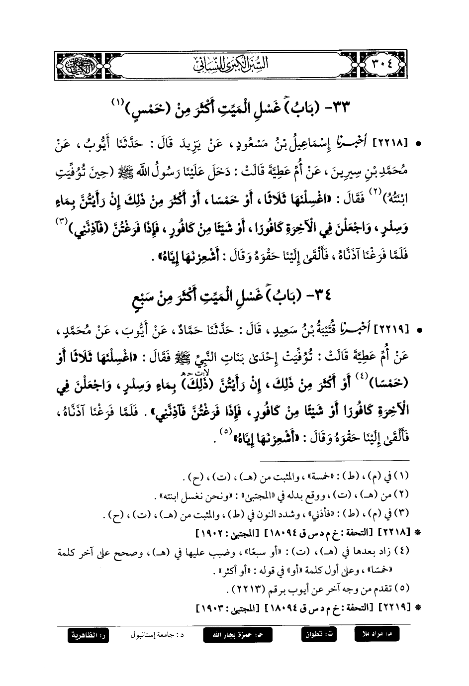 33- بابُ غَسْلِ المَيِّتِ أَكْثَرَ مِنْ خَمْسٍ.