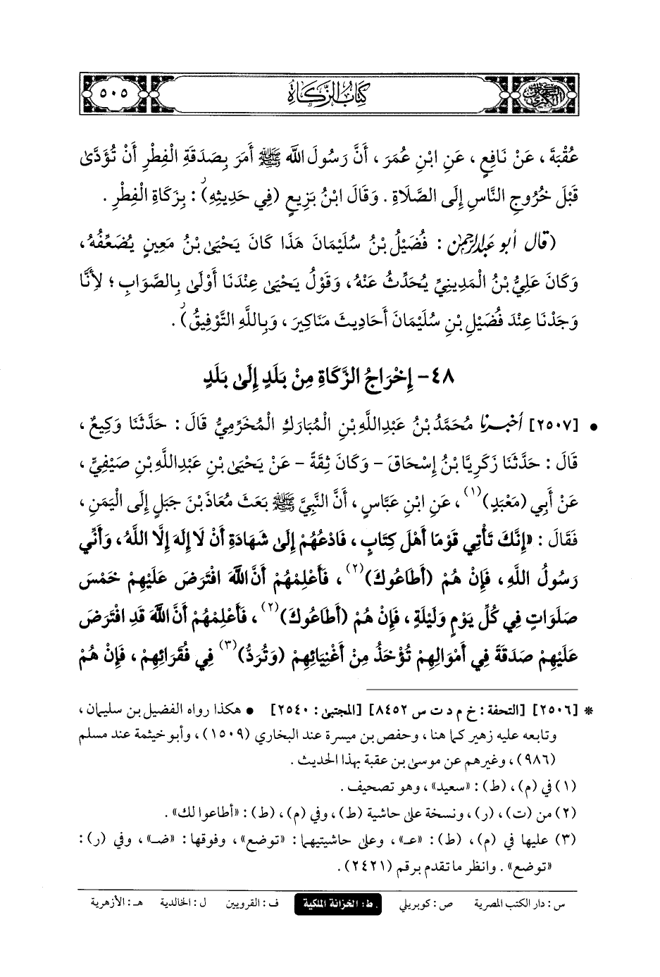 48 - إِخْرَاجُ الزَّكَاةِ مِنْ بَلَدٍ إِلَى بَلَدٍ.