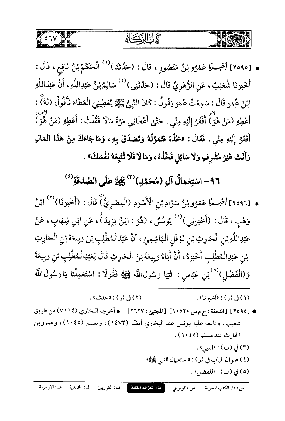 96- اسْتِعْمَالُ آلِ مُحَمدٍ صَلى الله عَليه وسَلم عَلَى الصَّدَقَةِ.