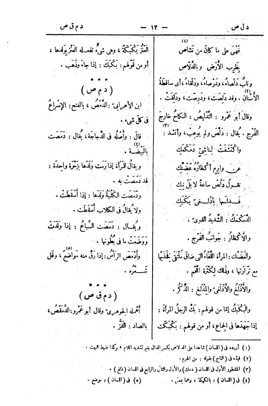 ويُقال: دَمَصَت السِّباعُ: إذا وَلَدَتْ ووَضَعَتْ ما في بُطُونها.