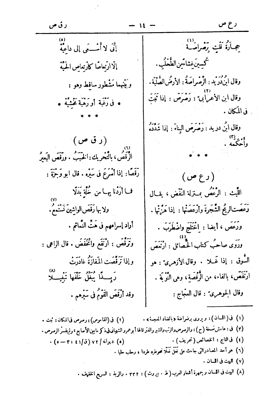 الرَّقَصُ، بالتَّحْريك: الخَبَبُ. ورَقَصَ البَعيرُ رَقَصًا: إذا أسْرَعَ في سَيْره. قال أبو وَجْزَةَ: