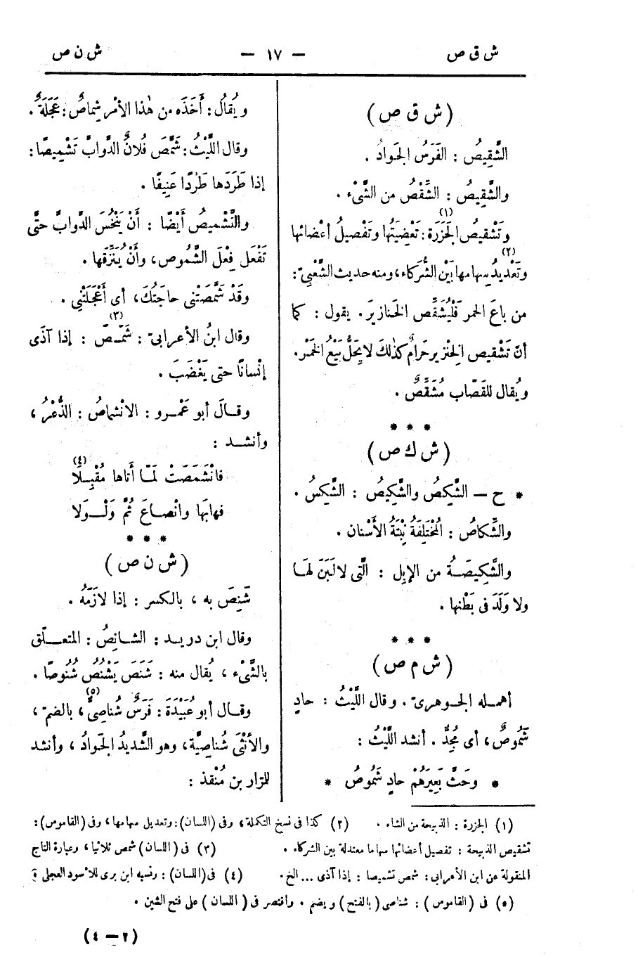 وقال أبو عُبَيْدَةَ: فَرَسٌ شُناصِيٌّ، بالضمّ، والأنْثَى شُناصِيَّة، وهو الشَّديدُ الجَوادُ، وأنشد للمرّار بن مُنْقذ: