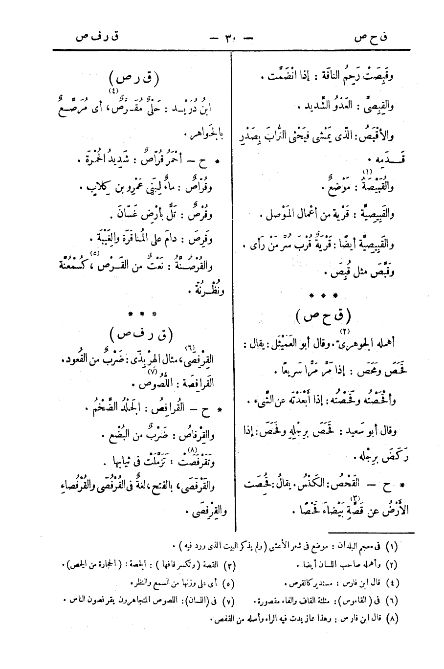 * ح - القَحْصُ: الكَنْسُ. يقالُ: قُحِصَت الأَرْضُ عن قَصَّةٍ بَيْضاءَ قَحْصًا.