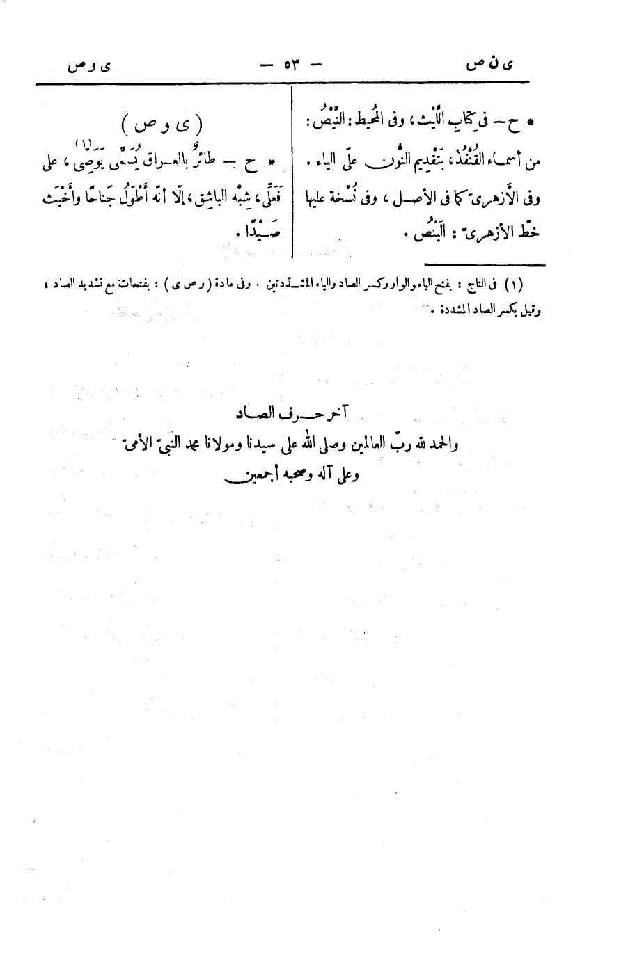 * ح - في كِتابِ اللَّيْث، وفي المُحيط: النَّيْصُ: من أسماء القُنْفُذ، بتَقْدِيم النُّون علَى الياء. وفي الأَزهريّ كما في الأصل، وفي نُسْخة عليها خطّ الأزهريّ: اليَنْصُ.