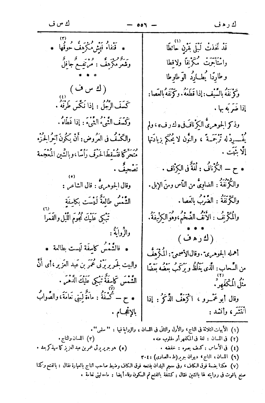 وذكر الجوهريُّ " الكِرْنافَ " في " ك ر ف "، ولم يُفْرِدْ له تَرْجَمَةً، والنُّون لا يُحْكَمُ بزيادَتِها إلَّا بثَبَتٍ.