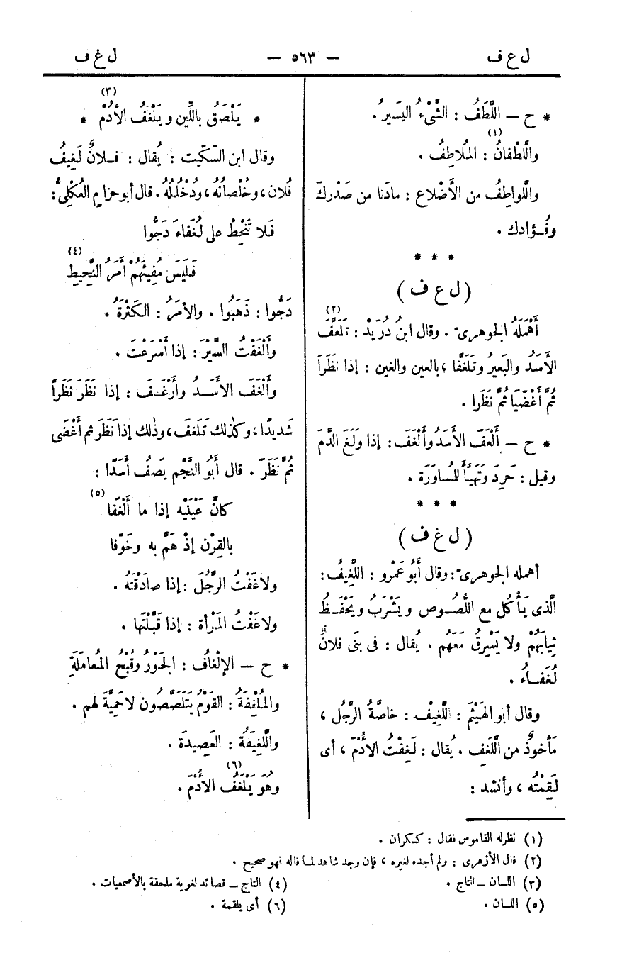 وقال أبو الهَيْثَمِ: اللَّغِيفُ: خاصَّةُ الرَّجُلِ، مأخوذٌ من اللَّغَفِ. يُقال: لَغِفْتُ الأُدْمَ، أي لَقِمْتُه، وأنشد:
