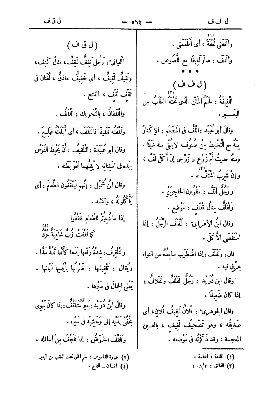 وقالَ ابنُ دريدٍ: بَعِيرٌ مُتَلَقِّفٌ: إذا كان يَهْوِي بخُفَّيْ يَدَيْهِ إلى وَحْشِيِّه في سَيْرِه.
