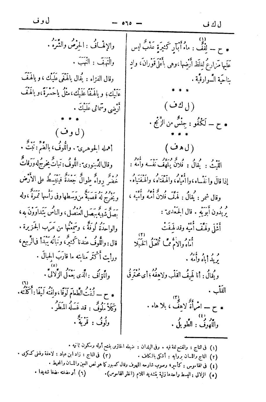 * ح - لُفْتُ الطَّعامَ لَوْفًا، ولِفْتُه لَيْفًا: أَكَلْتُه.