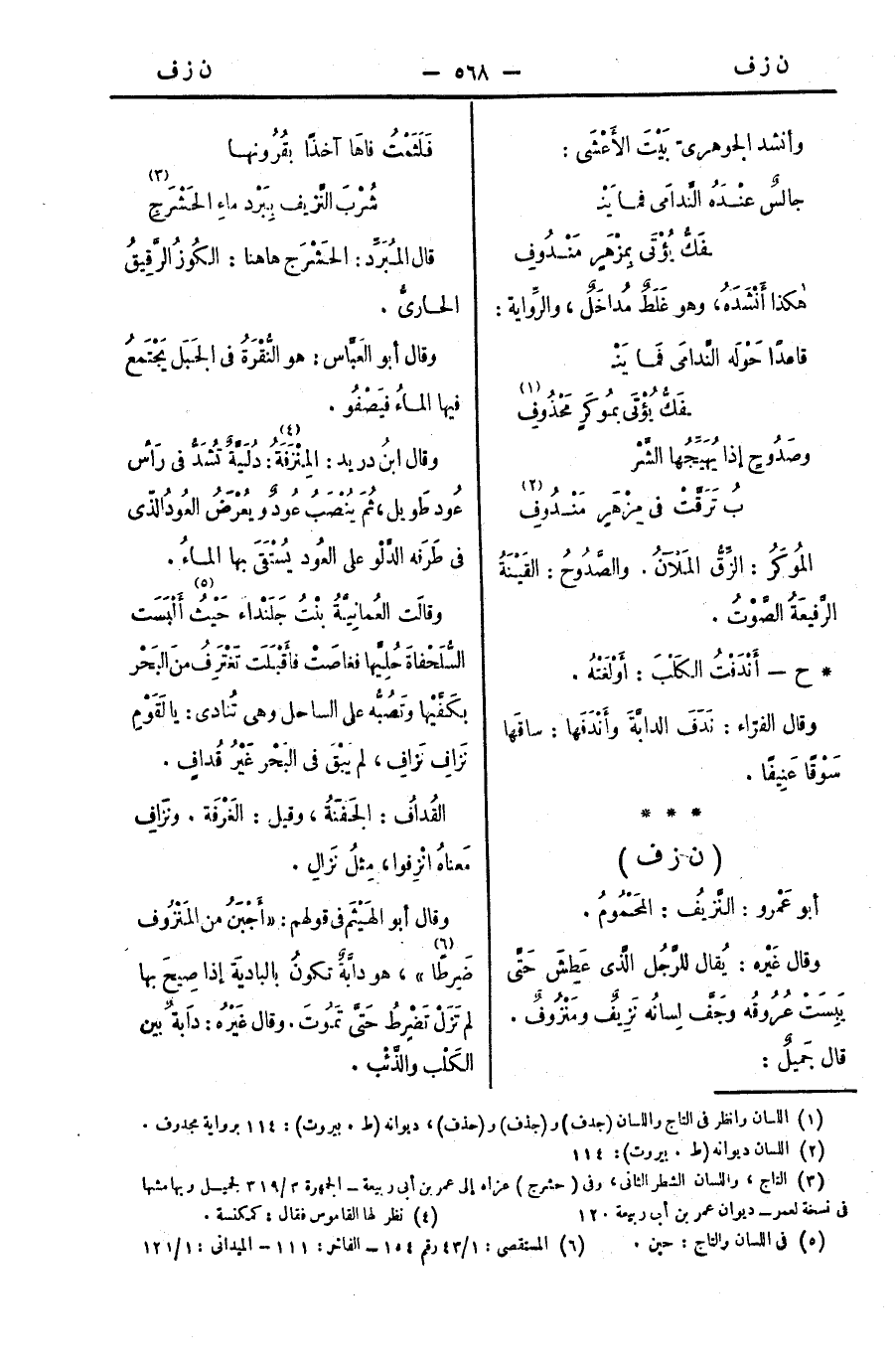 القُدافُ: الجَفْنَةُ، وقيل: الغَرْفَةُ. ونَزافِ مَعناهُ انْزِفوا، مِثْلُ نَزالِ.