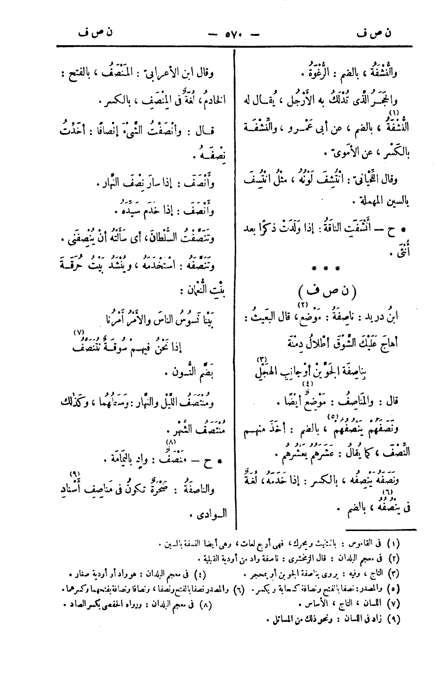 وتَنَصَّفَهُ: اسْتَخْدَمَهُ، ويُنْشَدُ بَيْتُ حُرَقَةَ بِنْتِ النُّعْمانِ: