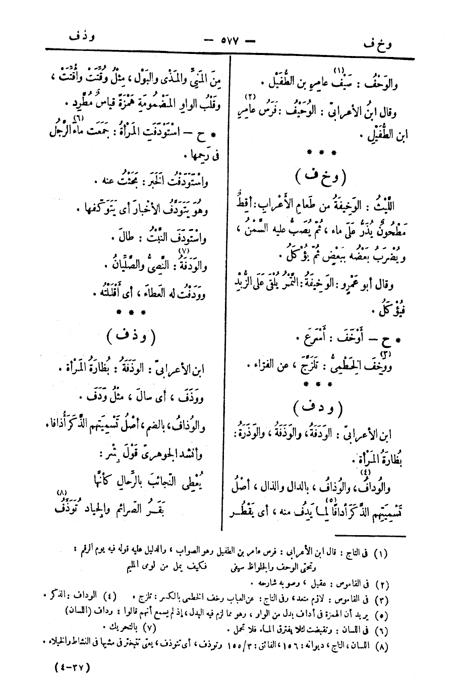 ابن الأعرابيّ: الوَدَفَةُ، والوَذَفَةُ، والوَذَرَةُ: بُظارَةُ المَرْأةِ.