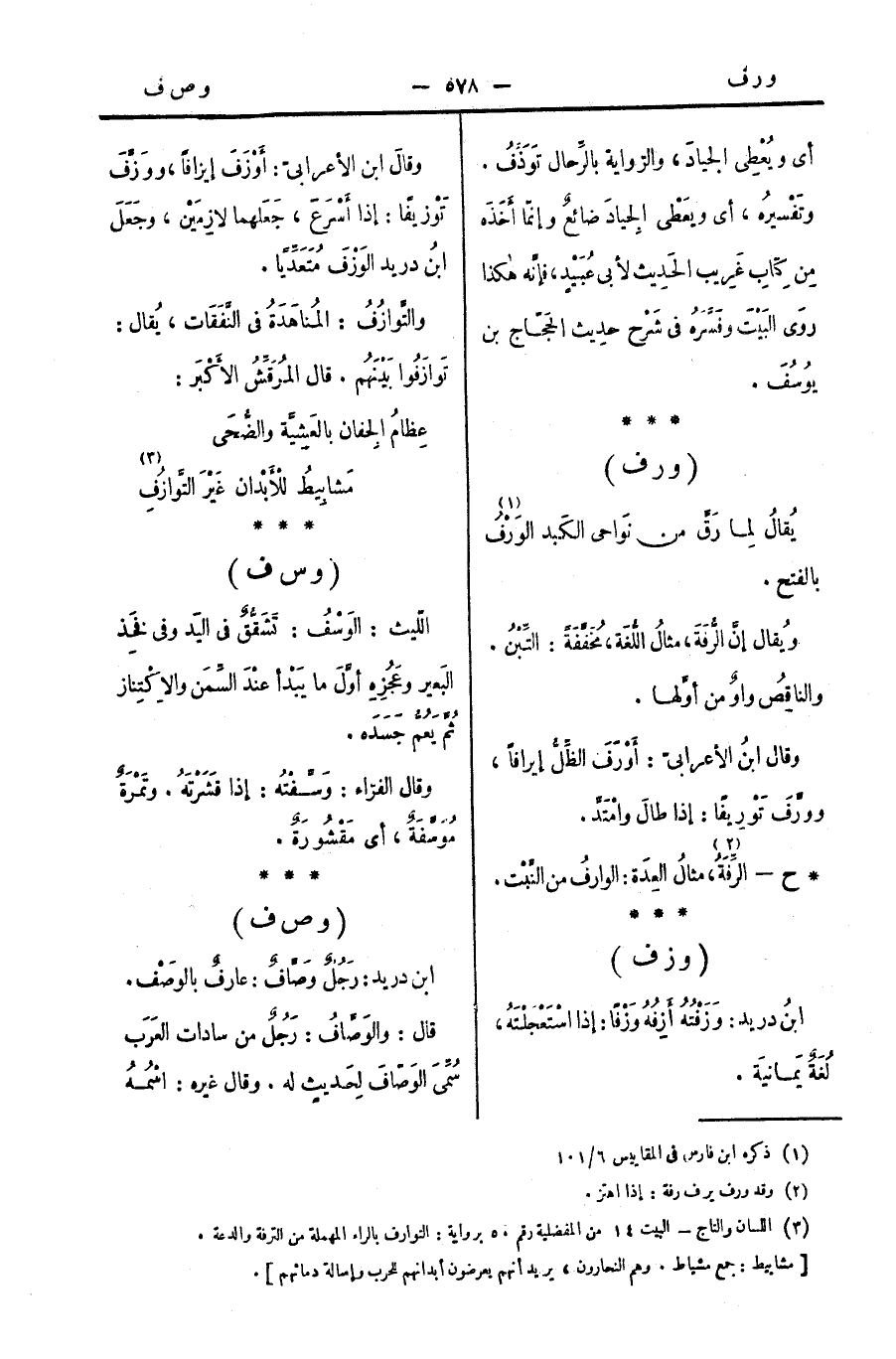 وقالَ ابنُ الأعرابيِّ: أَوْزَفَ إيزافًا، ووَزَّفَ تَوْزِيفًا: إذا أَسْرَعَ، جَعَلَهما لازِمَيْنِ، وجَعَلَ ابنُ دريدٍ الوَزْفَ مُتَعَدِّيًا.