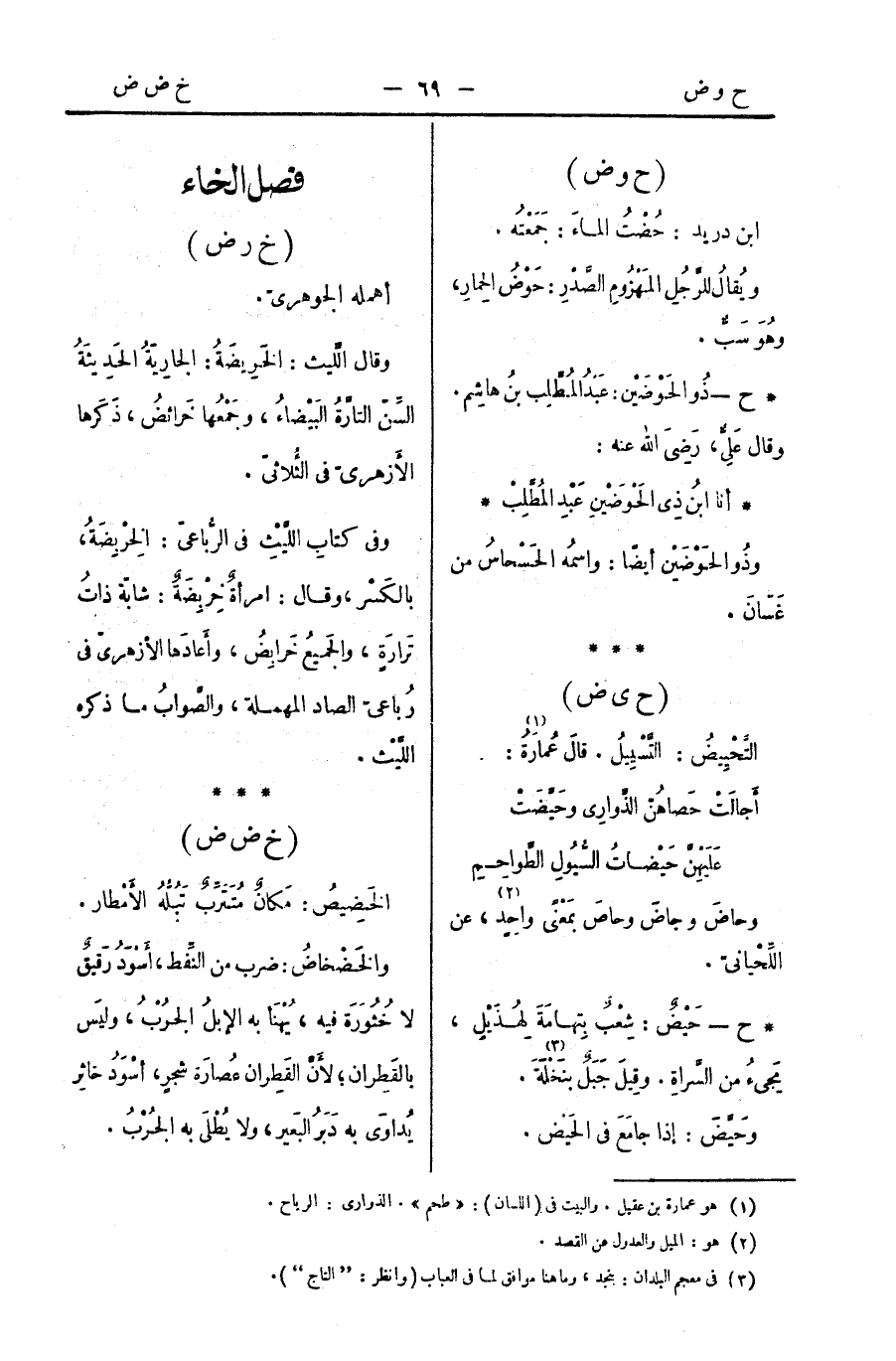 ابن دريد: حُضْتُ الماءَ: جَمَعْتُه.