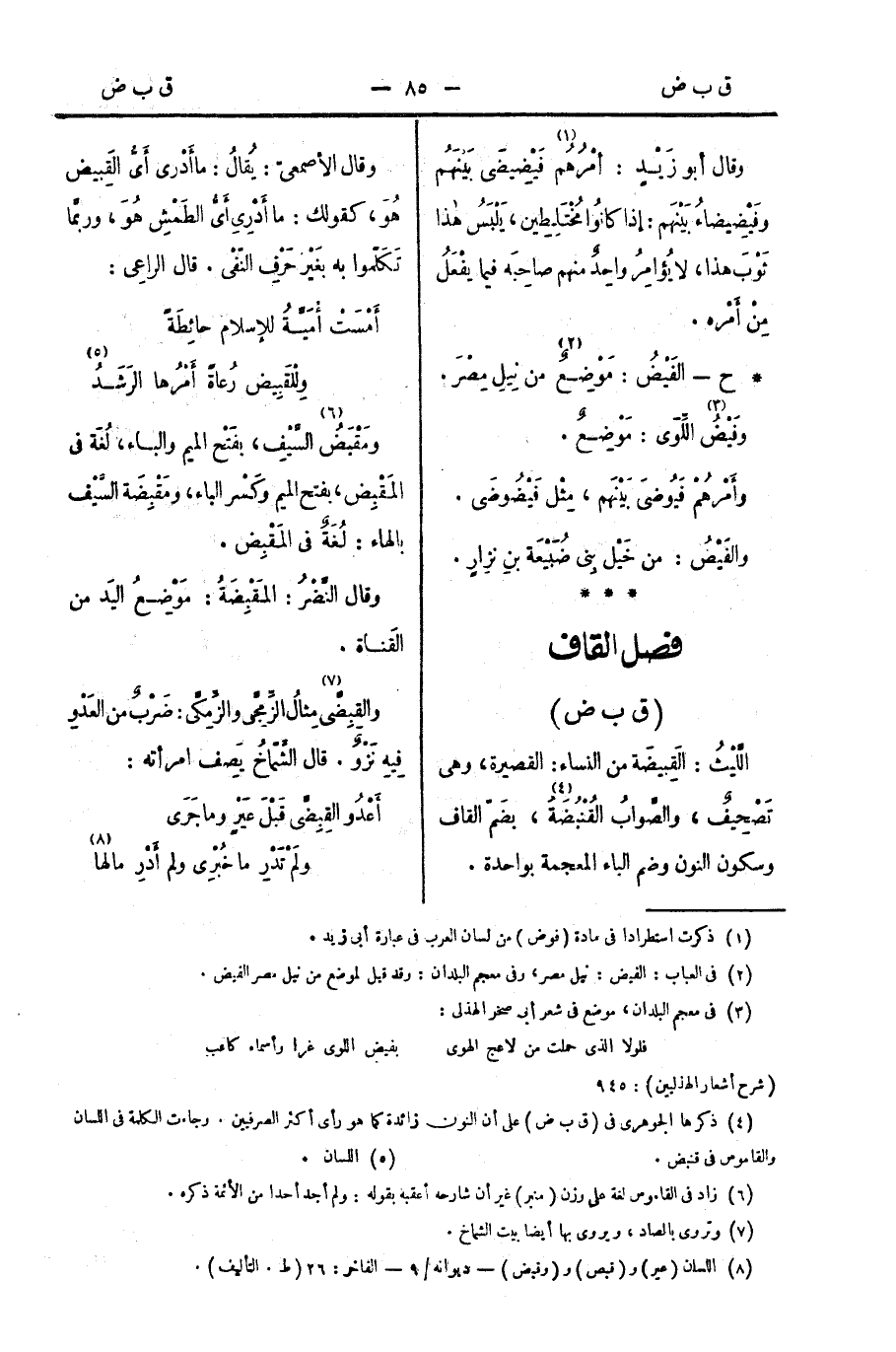 اللَّيْثُ: القَبِيضَة من النساء: القصيرة، وهي تَصْحِيفٌ، والصَّوابُ القُنْبُضَةُ، بضَمّ القاف وسكون النون وضم الباء المعجمة بواحدة.