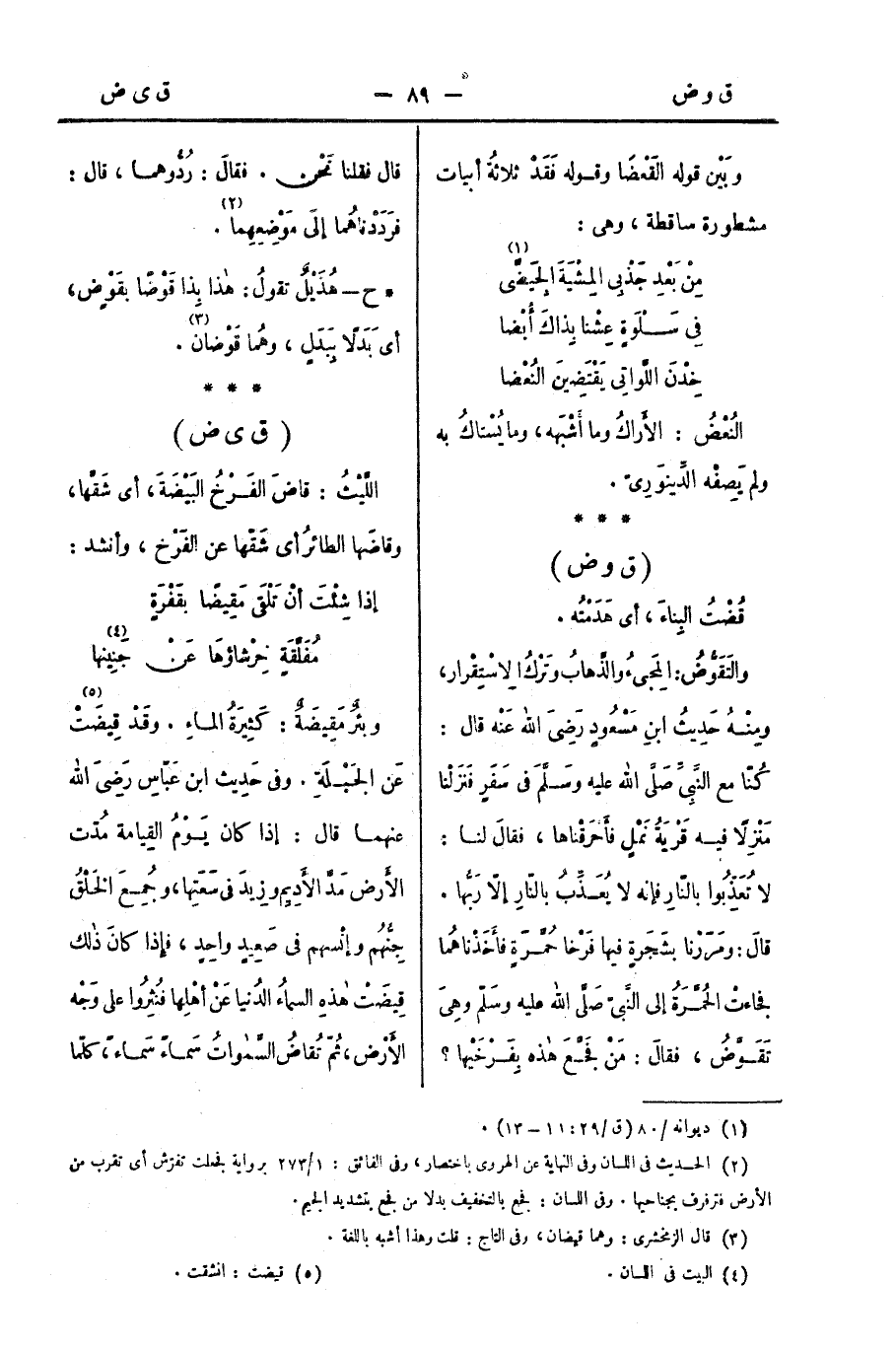 * ح - هُذَيْلٌ تقولُ: هذا بِذا قَوْضًا بقَوْضٍ، أي بَدَلًا بِبَدَلٍ، وهُما قَوْضان.