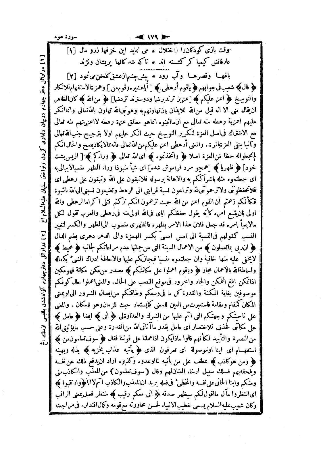 قالَ شعيب فى جوابهم يا قَوْمِ أَرَهْطِي [أيا عشيره وقوم من] وهمزة الاستفهام للانكار والتوبيخ أَعَزُّ عَلَيْكُمْ [عزيز ترند بر شما ودوسترند نزد شما] مِنَ اللَّهِ كان الظاهر ان يقال منى الا انه قيل من الله للايذان بان تهاونهم به وهو نبى الله تهاون بالله تعالى وانما أنكر عليهم اعزية رهطه منه تعالى مع ان ما أثبتوه انما هو مطلق عزة رهطه لا اعزيتهم منه تعالى مع الاشتراك فى اصل العزة لتكرير التوبيخ حيث أنكر عليهم اولا بترجيح جنب الله تعالى وثانيا بنفي العزة بالمرة. والمعنى أرهطى أعز عليكم من الله تعالى فانه مما لا يكاد يصح والحال انكم لم تجعلوا له حظا من العزة أصلا وَاتَّخَذْتُمُوهُ اى الله تعالى وَراءَكُمْ [از پس پشت خود] ظِهْرِيًّا [همچومرد فراموش شده] اى شيأ منبوذا وراء الظهر منسيالا يبالى به اى جعلتموه مثله باشراككم به والاهانة برسوله فلا تبقون على الله وتبقون على رهطى اى فلا تحفظوننى ولا ترحموننى لله وتراعون نسبة قرابتى الى الرهط وتضيعون نسبتى الى الله بالنبوة فكأنكم زعمتم ان القوم أعز من الله حيث تزعمون انكم تركتم قتلى إكراما لرهطى والله اولى بان يتبع امره كأنه يقول حفظكم إياي فى الله اولى منه فى رهطى والعرب تقول لكل مالا يعبأ بامره قد جعل فلان هذا الأمر بظهره فالظهرى منسوب الى الظهر والكسر لتغيير النسب كقولهم فى النسبة الى أمس امسىّ بكسر الهمزة والى الدهر دهرى بضم الدال إِنَّ رَبِّي بِما تَعْمَلُونَ من الأعمال السيئة التي من جملتها عدم مراعاتكم لجانبه مُحِيطٌ لا يخفى عليه منها خافية وان جعلتموه منسيا فيجازيكم عليها والإحاطة ادراك الشيء بكماله واحاطة الله بالأعمال مجاز وَيا قَوْمِ اعْمَلُوا عَلى مَكانَتِكُمْ مصدر من مكن مكانة فهو مكين إذا تمكن ابلغ التمكن والجار والمجرور فى موقع النصب على الحال. والمعنى اعملوا حال كونكم موصوفين بغاية المكنة والقدرة كل ما فى وسعكم وطاقتكم من إيصال الشرور الى او بمعنى المكان كمقام ومقامة فاستعيرت من العين للمعنى كما يستعار حيث للزمان وهو للمكان. والمعنى على ناحيتكم وجهتكم التي أنتم عليها من الشرك والعداوة لى إِنِّي ايضا عامِلٌ على مكانتى فحذف للاختصار اى عامل بقدر ما آتاني الله من القدرة وعلى حسب ما يؤتينى الله من النصرة والتأييد فكأنهم قالوا ماذا يكون إذا عملنا على قوتنا فقال سَوْفَ تَعْلَمُونَ مَنْ استفهام اى أينا او موصولة اى تعرفون الذي يَأْتِيهِ عَذابٌ يُخْزِيهِ يذله ويهينه وَمَنْ هُوَ كاذِبٌ عطف على من يأتيه لما اوعدوه وكذبوه أراد ان يدفع ذلك عن نفسه ويلحقه بهم فسلك سبيل إرخاء العنان لهم وقال سَوْفَ تَعْلَمُونَ من المعذب والكاذب منى ومنكم وأينا الحانى على نفسه والمخطئ فى فعله يريد ان المعذب والكاذب أنتم لا انا وَارْتَقِبُوا اى انتظروا مآل ما أقول لكم سيظهر صدقه إِنِّي مَعَكُمْ رَقِيبٌ منتظر فعيل بمعنى الراقب وكان شعيب عليه السلام يسمى خطيب الأنبياء لحسن محاورته مع قومه وكمال اقتداره فى مراجعته
