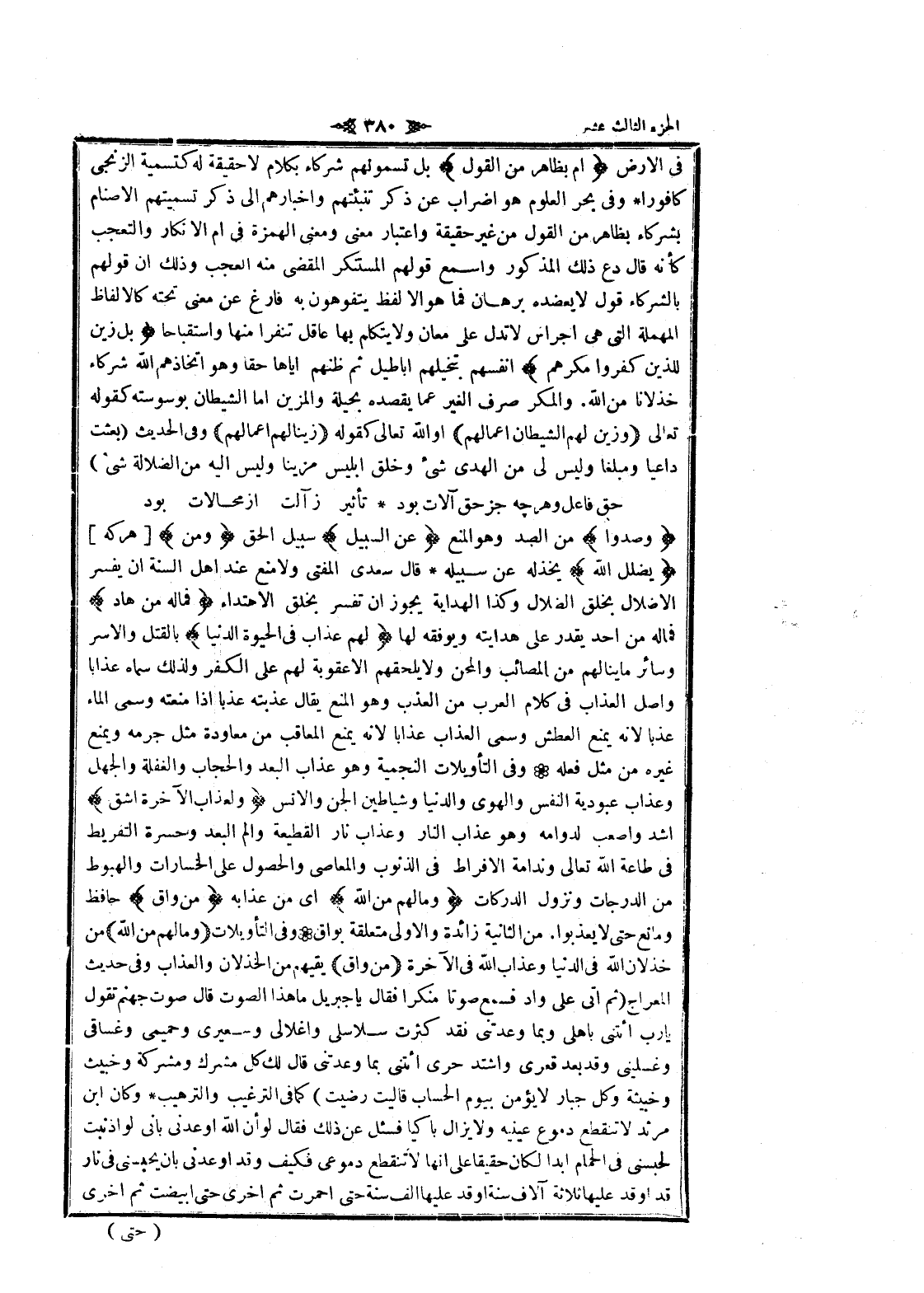 وَصُدُّوا من الصد وهو المنع عَنِ السَّبِيلِ سبيل الحق وَمَنْ [هر كه] يُضْلِلِ اللَّهُ يخذله عن سبيله قال سعدى المفتى ولا منع عند اهل السنة ان يفسر الإضلال بخلق الضلال وكذا الهداية يجوز ان تفسير بخلق الاهتداء فَما لَهُ مِنْ هادٍ فما له من أحد يقدر على هدايته ويوفقه لها لَهُمْ عَذابٌ فِي الْحَياةِ الدُّنْيا
