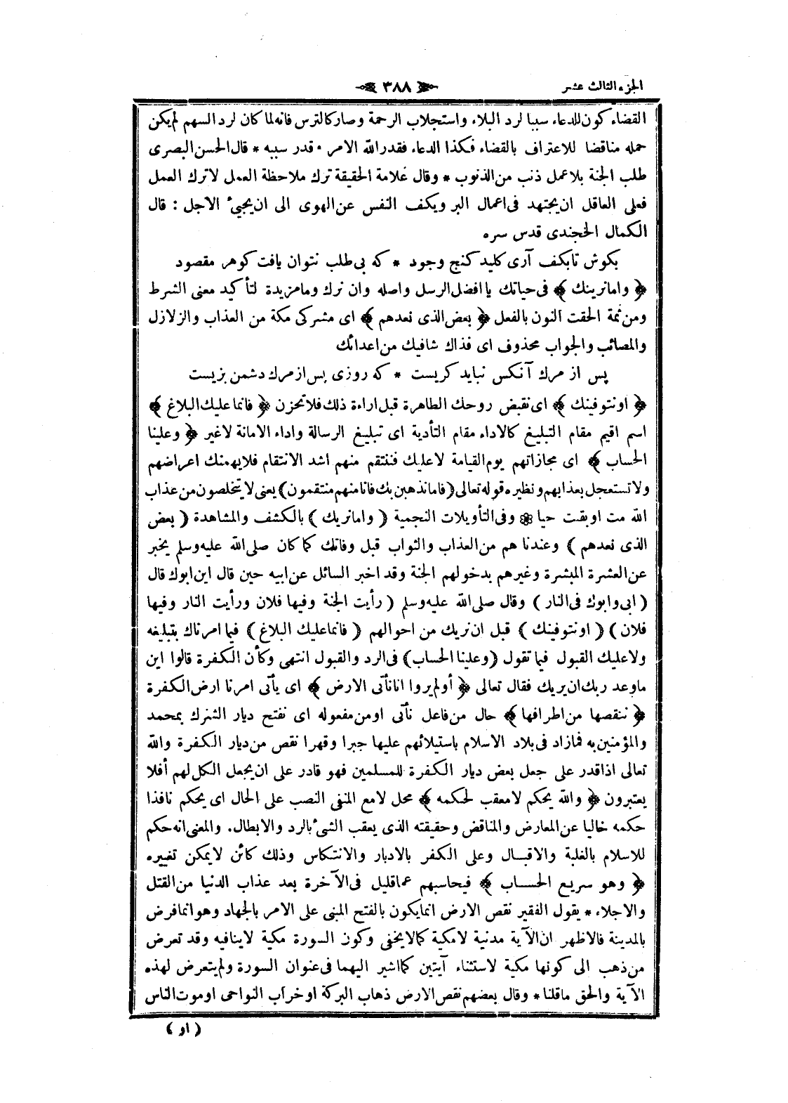 القضاء كون الدعاء سببا لرد البلاء واستجلاب الرحمة وصار كالترس فانه لما كان لرد السهم لم يكن حمله مناقضا للاعتراف بالقضاء فكذا الدعاء فقدر الله الأمر وقدر سببه قال الحسن البصري طلب الجنة بلا عمل ذنب من الذنوب وقال علامة الحقيقة ترك ملاحظة العمل لا ترك العمل فعلى العاقل ان يجتهد فى اعمال البر ويكف النفس عن الهوى الى ان يجيئ الاجل: قال الكمال الخجندي قدس سره