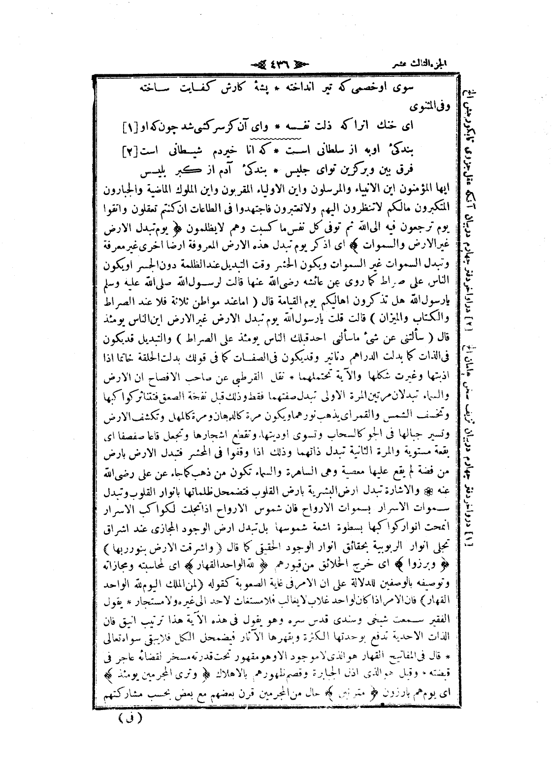 (1) در اواخر دفتر چهارم در بيان تزيف سخن هامان إلخ [.....]