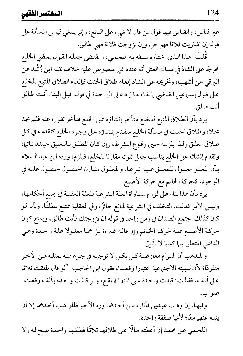 يرد بأن الطلاق المتبع للخلع متأخر عن الخلع فتأخر تقرره عنه فلم يجد محلا، وطلاق الحنث في مسألة الخلع متقدم إنشاؤه على وجود الخلع كتقدمه في كل طلاق معلق ولذا يلزمه حين وقوع الشرط، وإن كان المطلق بالتعليق حينئذ نائما، وتقدم إنشائه على الخلع يناسب جعله ثبوته مقارنا للخلع، فيلزم، ورده ابن عبد السلام بأن المعلق معلول للمعلق عليه شرعا، والمعلول مقارن الحصول لحصول علته في الوجود، كحركة اخاتم مع حركة الأصبع.