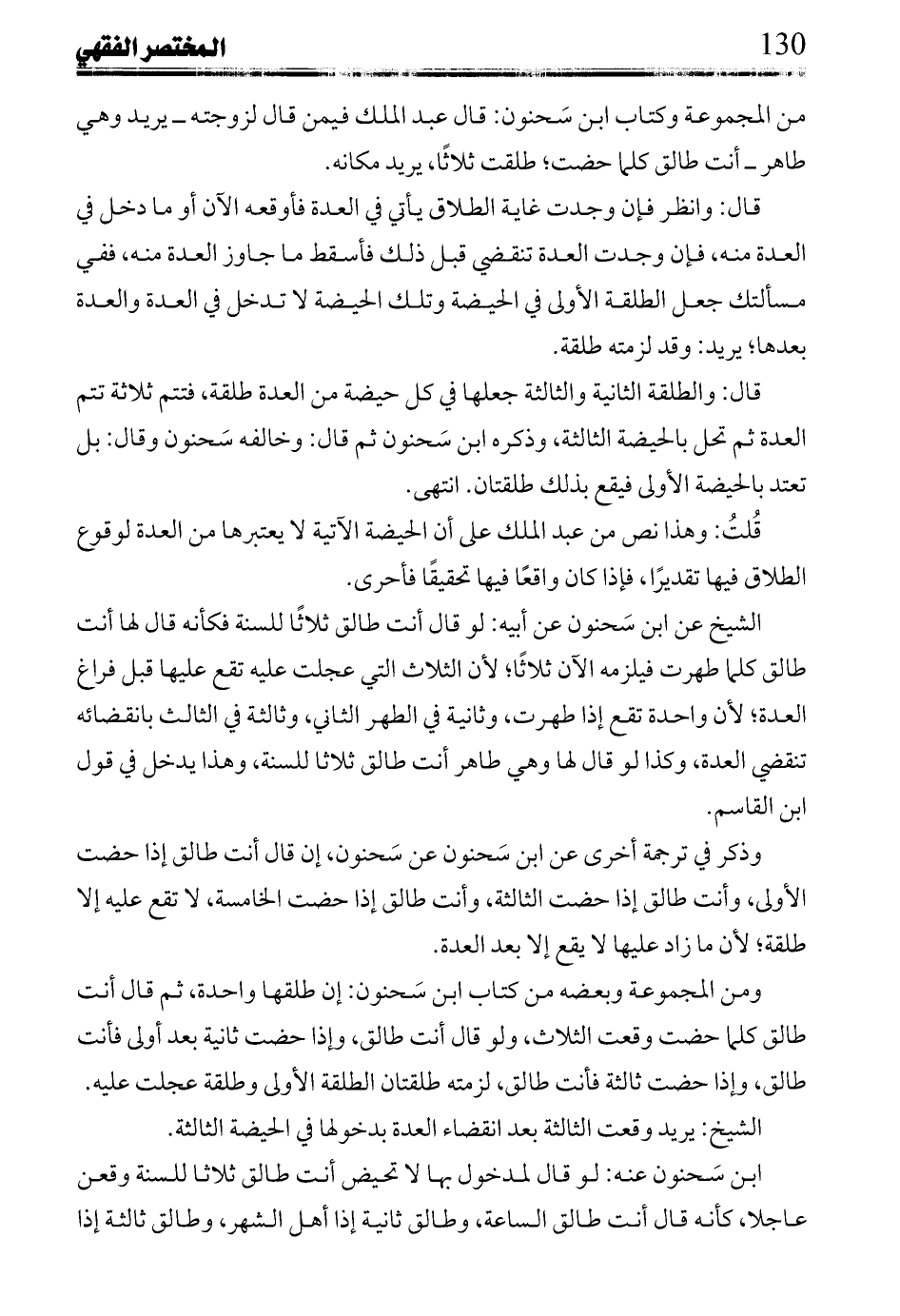 ابن سحنون عنه: لو قال لمدخول بها لا تحيض أنت طالق ثلاثا للسنة وقعن عاجلا، كأنه قال أنت طالق الساعة، وطالق ثانية إذا أهل الشهر، وطالق ثالثة إذا