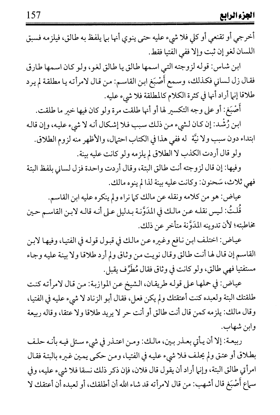 ابن رُشْد: إن كان لشيء من ذلك سبب فلا إشكال أنه لا شيء عليه، وإن قاله ابتداء دون سبب ولا نيَّة له ففي هذا الكتاب احتمال، والأظهر منه لزوم الطلاق.
