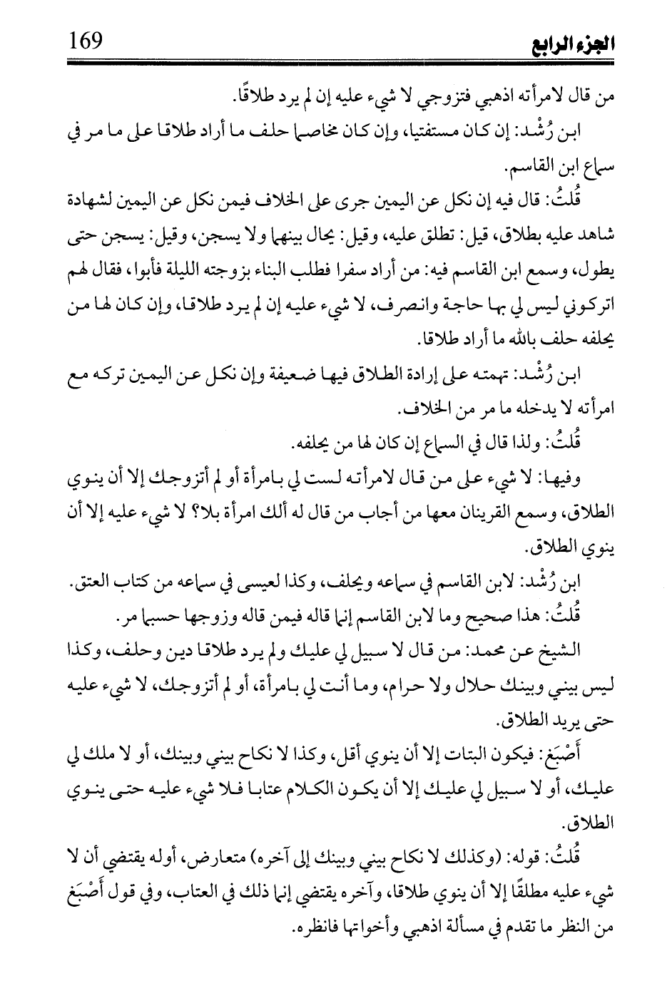 ابن رُشْد: إن كان مسفتيا، وإن كان مخاصما حلف ما أراد طلاقا على ما مر في سماع ابن القاسم.