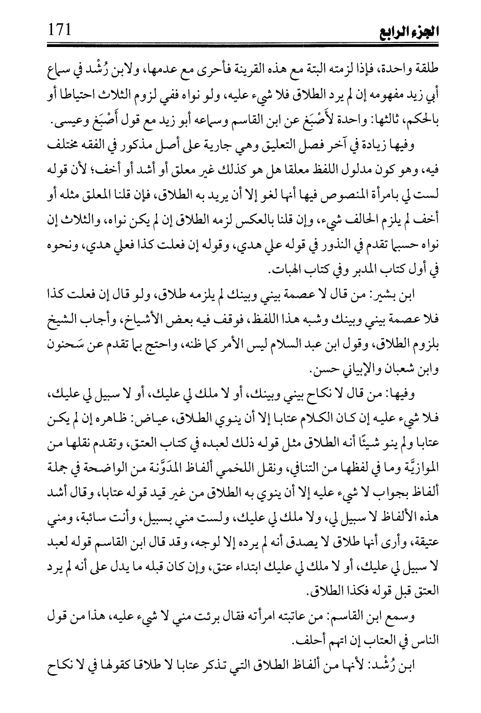 ابن رُشد: لأنها من ألفاظ الطلاق التي تذكر عتاباً لا طلاقاً كقولها في لا نكاح