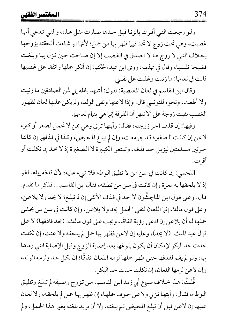 وقال ابن القاسم في لعان المغتصبة: تقول: أشهد بالله إني لمن الصادقين ما زنيت ولا أطعت، ونحوه للتونسي قال: وإذا لاعنها ونفى الولد، ولم يكن عليها لعان لظهور الغصب بقيت زوجة على الأشهر أن الفرقة إنما هي بتمام لعانهما.