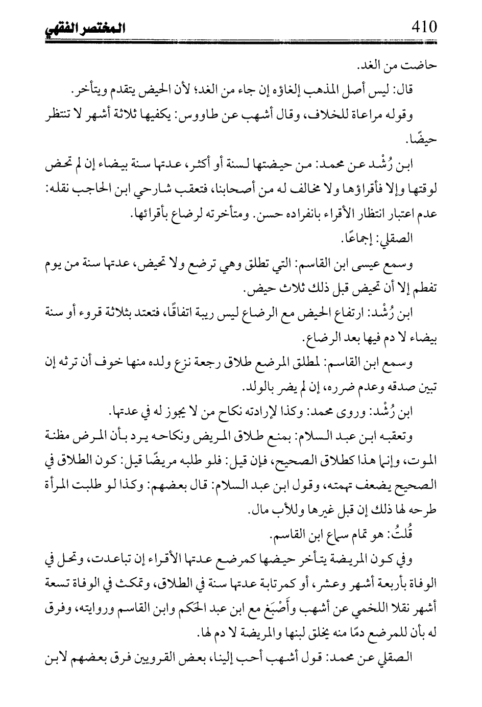 ابن رشد: ارتفاع الحيض مع الرضاع ليس ريبة اتفاقًا، فتعتد بثلاثة قروء أو سنة بيضاء لا دم فيها بعد الرضاع.