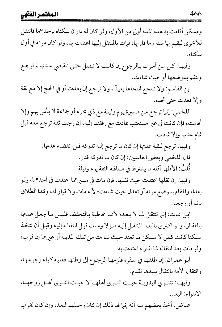 وفيها: كل من أمرت بالرجوع إن كانت لا تصل حتى تنقضي عدتها لم ترجع ولتقم بموضعها أو حيث شاءت.