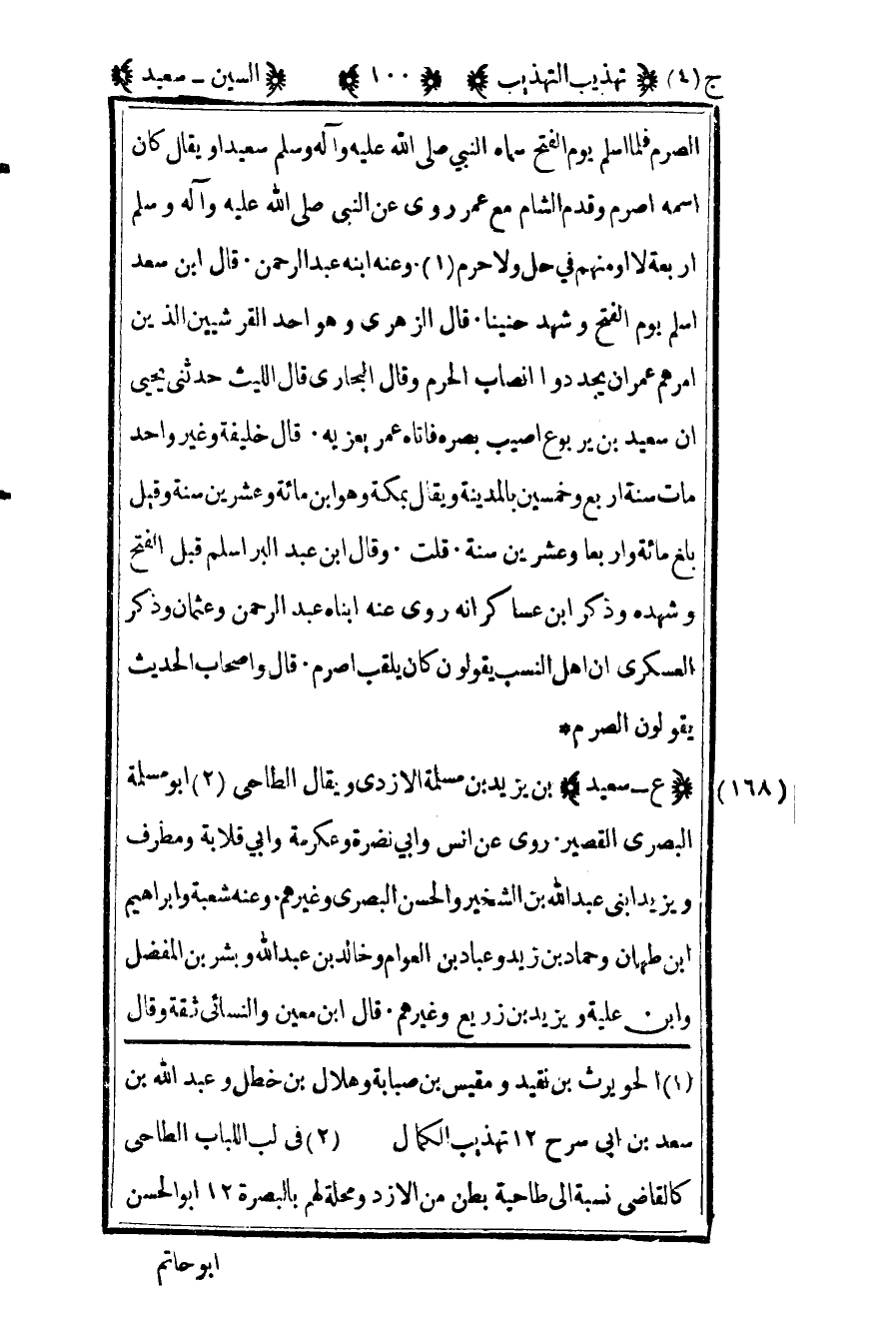 168- "ع –سعيد" بن يزيد بن مسلمة الأزدي ويقال الطاحي2 أبو مسلمة البصري القصير روى عن أنس وأبي نضرة وعكرمة وأبي قلابة ومطرف ويزيد ابني عبد الله بن الشخير والحسن البصري وغيرهم وعنه شعبة وإبراهيم بن طهمان وحماد بن زيد وعباد بن العوام وخالد بن عبد الله وبشر بن المفضل وابن علية ويزيد بن زريع وغيرهم قال ابن معين والنسائي ثقة وقال