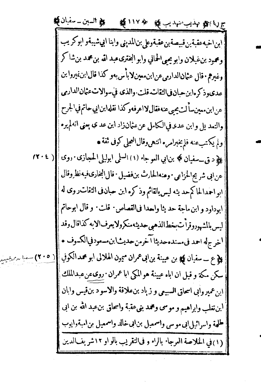 206- "ع – سفيان" بن عيينة بن أبي عمران ميمون الهلالي أبو محمد الكوفي سكن مكة وقيل أن أباه عيينة هو المكي أبا عمران روى عن عبد الملك بن عمير وأبي إسحاق السبيعي وزياد بن علاقة والأسود بن قيس وأبان بن تغلب وإبراهيم وموسى ومحمد بني عقبة وإسحاق بن عبد الله بن أبي طلحة وإسرائيل أبي موسى وإسماعيل بن أبي خالد وإسماعيل بن أمية وأيوب