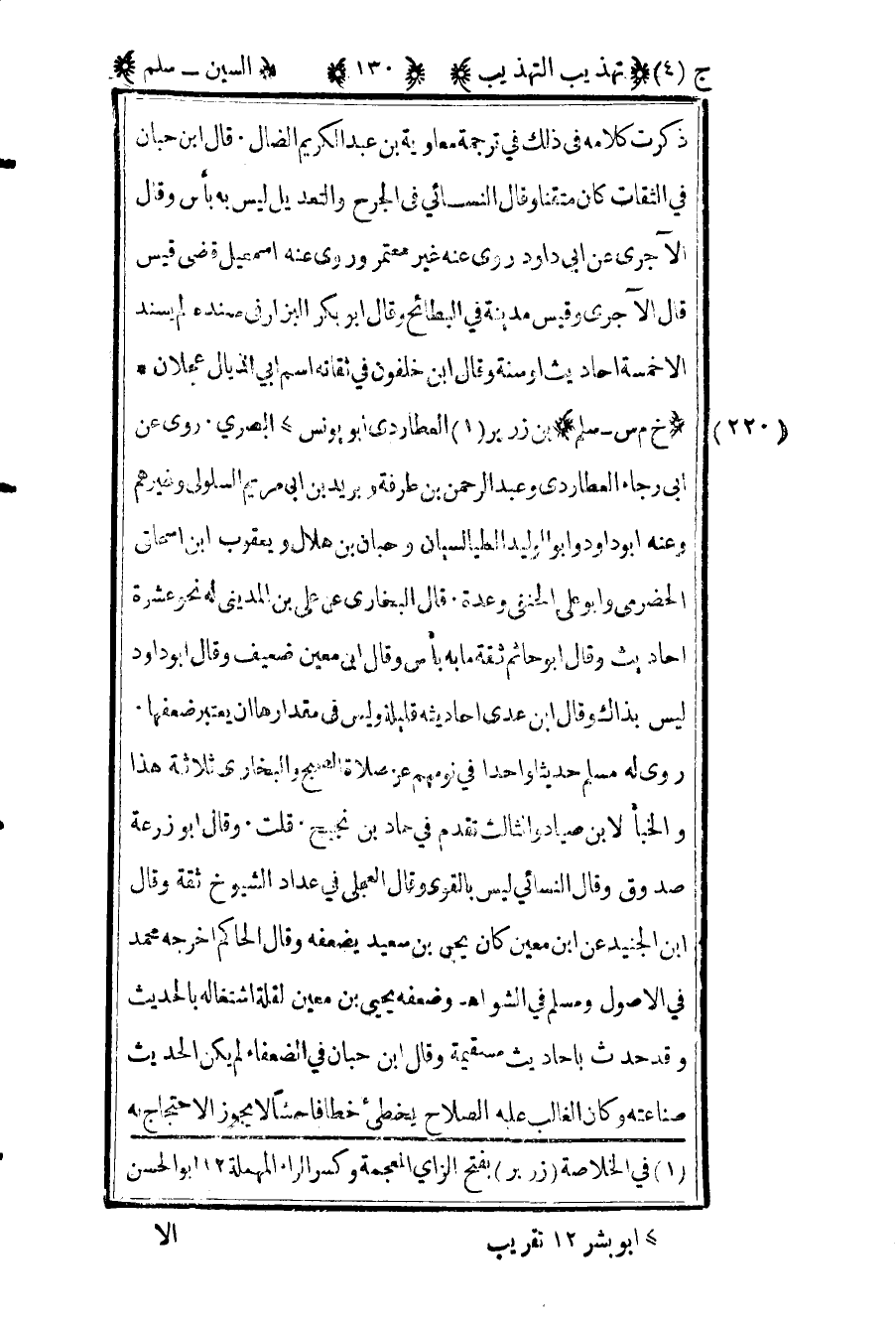 1 في الخلاصة "زربر" بفتح المعجمة وكسر الراء المهملة 12 أبو الحسن.