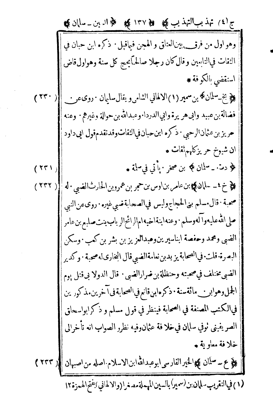 1 في التقريب سلمان بن "سمير" بالسين المهملة مصغراً "والألهاني" بفتح الهمزة 12.