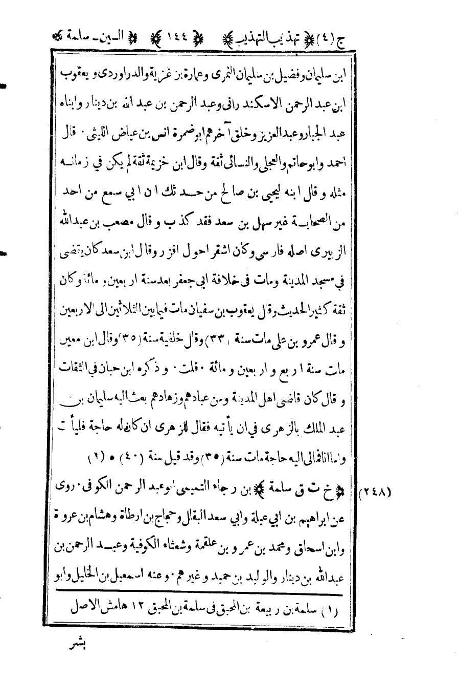 248- "خ ت ق – سلمة" بن رجاء التميمي أبو عبد الرحمن الكوفي روى عن إبراهيم بن أبي عبلة وأبي سعد البقال وحجاج بن أرطاة وهشام بن عروة وابن إسحاق ومحمد بن عروة بن علقمة وشعثاء الكوفية وعبد الرحمن بن عبد الله بن دينار والوليد بن حميد وغيرهم وعنه إسماعيل بن الخليل وأبو