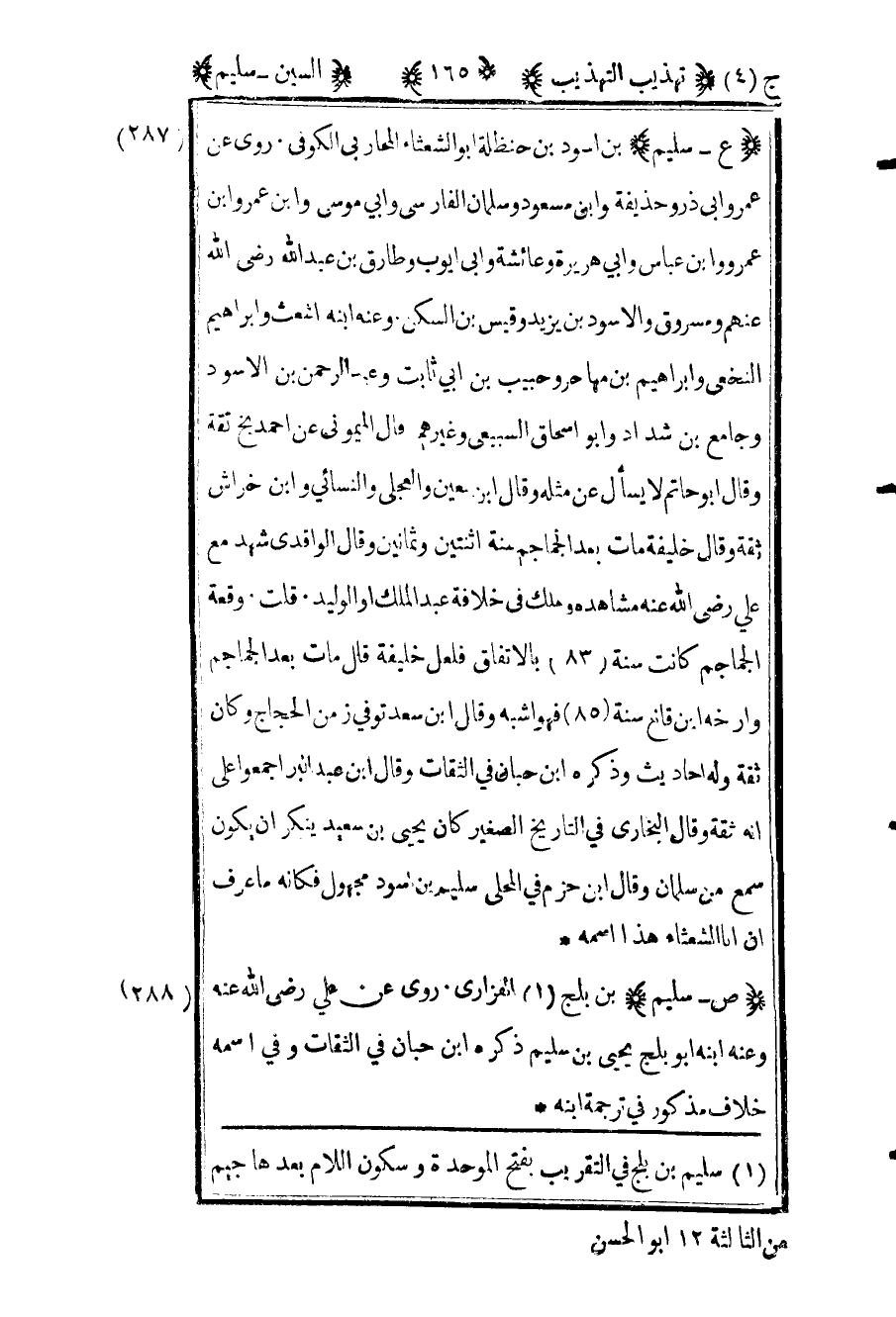 1 سليم بن بلج في التقريب بفتح الموحدة وسكون اللام بعدها جيم من الثالثة 12 أبو الحسن.
