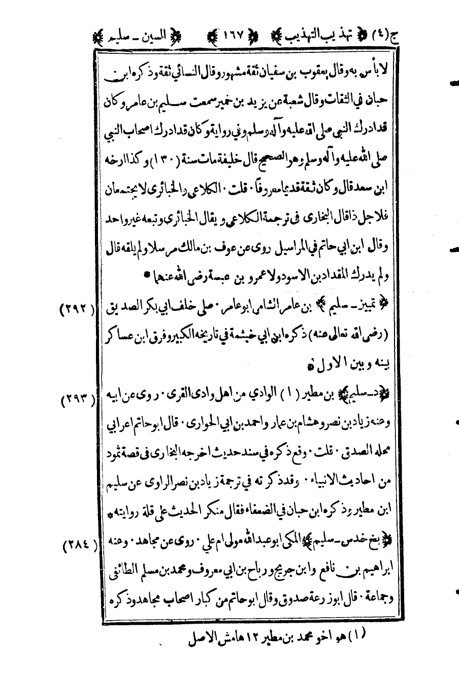 292- "تمييز –سليم" بن عامر الشامي أبو عامر صلى خلف أبي بكر الصديق رضي الله عنه ذكره بن أبي خيثمة في تاريخه الكبير وفرق بن عساكر بينه وبين الأول.
