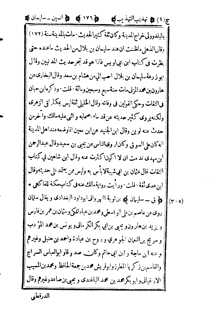 305- "ق – سليمان" بن توبة النهرواني أبو داود البغدادي ويقال سلمان روى عن عاصم بن علي الواسطي ومحمد بن عباد المكي وعثمان بن عمر بن فارس ويزيد بن هارون ويحيى بن أبي بكر الكرماني ويونس بن محمد المؤدب وسريج بن النعمان الجوهري وروح بن عبادة وأحمد بن حنبل وغيرهم وعنه ابن ماجة وابن أبي حاتم كان صودقا وأبو العباس السراج والقاسم بن زكريا المطرز وأبو قريش محمد بن جمعة الحافظ ومحمد بن المسيب الأرغياني وأبو بكر محمد بن محمد الباغندي ويحيى بن صاعد وغيرهم وقال