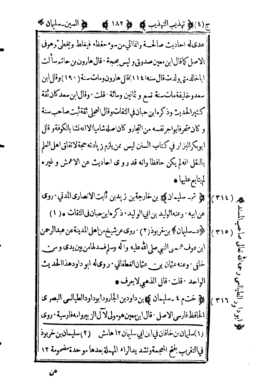 314- "تم – سليمان" بن خارجة بن زيد بن ثابت الأنصاري المدني روى عن أبيه وعنه الوليد بن أبي الوليد ذكره ابن حبان في الثقات.1