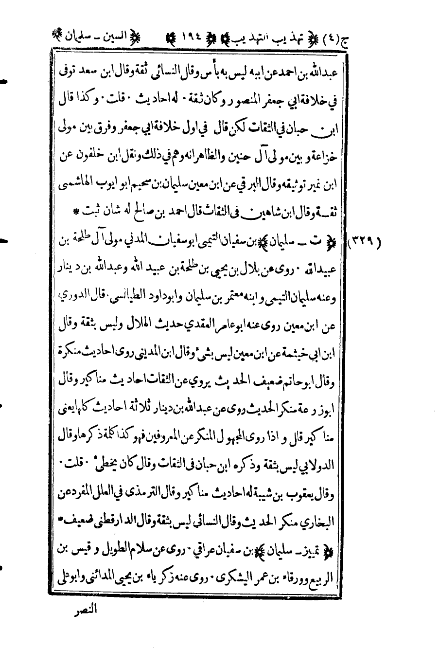 330- "تمييز-سليمان" بن سفيان عراقي روى عن سلام الطويل وقيس بن الربيع وورقاء بن عمر اليشكري روى عنه زكريا بن يحيى المدائني وأبو علي